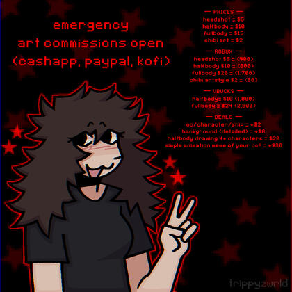 multi-fandom artist!! i love to draw, play games + make new friends, im shy when texting so i may not respond fast, but my dms are always open for commissions or anything. you can always message me on my instagram (trippyzwrld or alimeowz) or my main discord (4liciabeanz) :3 💗
